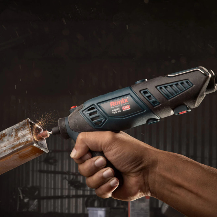 - مجهز به یک دسته جانبی ارگونومیک طراحی شده توسط رونیکس که استفاده از این فرز در طولانی مدت را آسان میکند