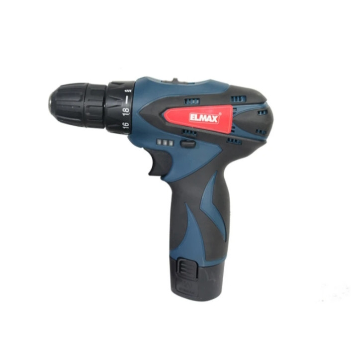 دریل شارژی المکس۱۲ ولت ۱۰ میلی متر دو دور خانگی همراه با BMC و لوازم جانبی و باتری اضافه مدلC.D 1702