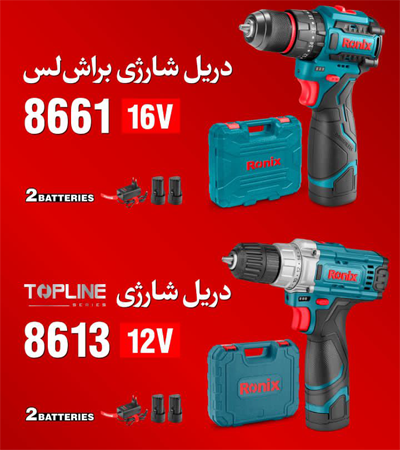 دریل پیچگوشتی شارژی رونیکس مدل 8661 دو عدد