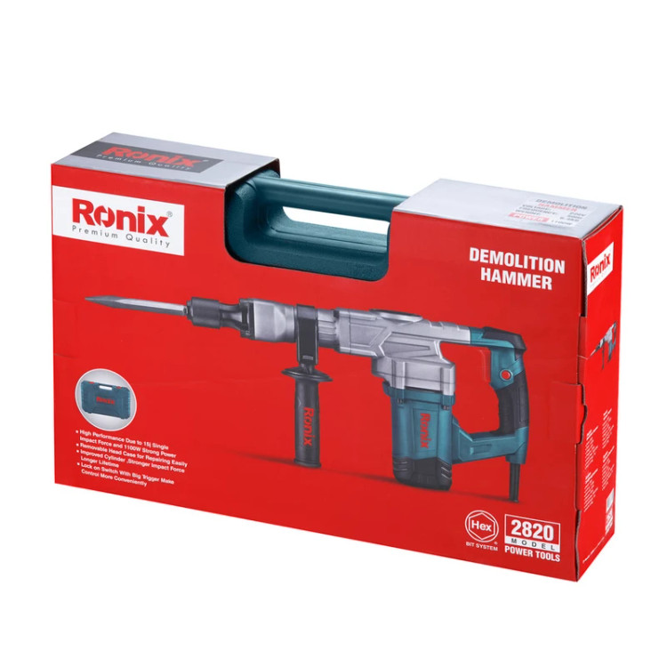 چکش تخریب 2820 رونیکس با موتور 1100 وات و توان ضربه 15 ژول، عملکردی قوی و قابل اطمینان در تخریب مصالح دارد. مکانیزم مکانیکی با دوام بالا و سیستم ضد لرزش باعث افزایش راحتی کاربر در استفاده طولانی مدت میشود. ساختار ضد غبار و سیستم جلوگیری از نشت گریس طول عمر دستگاه را افزایش میدهد.